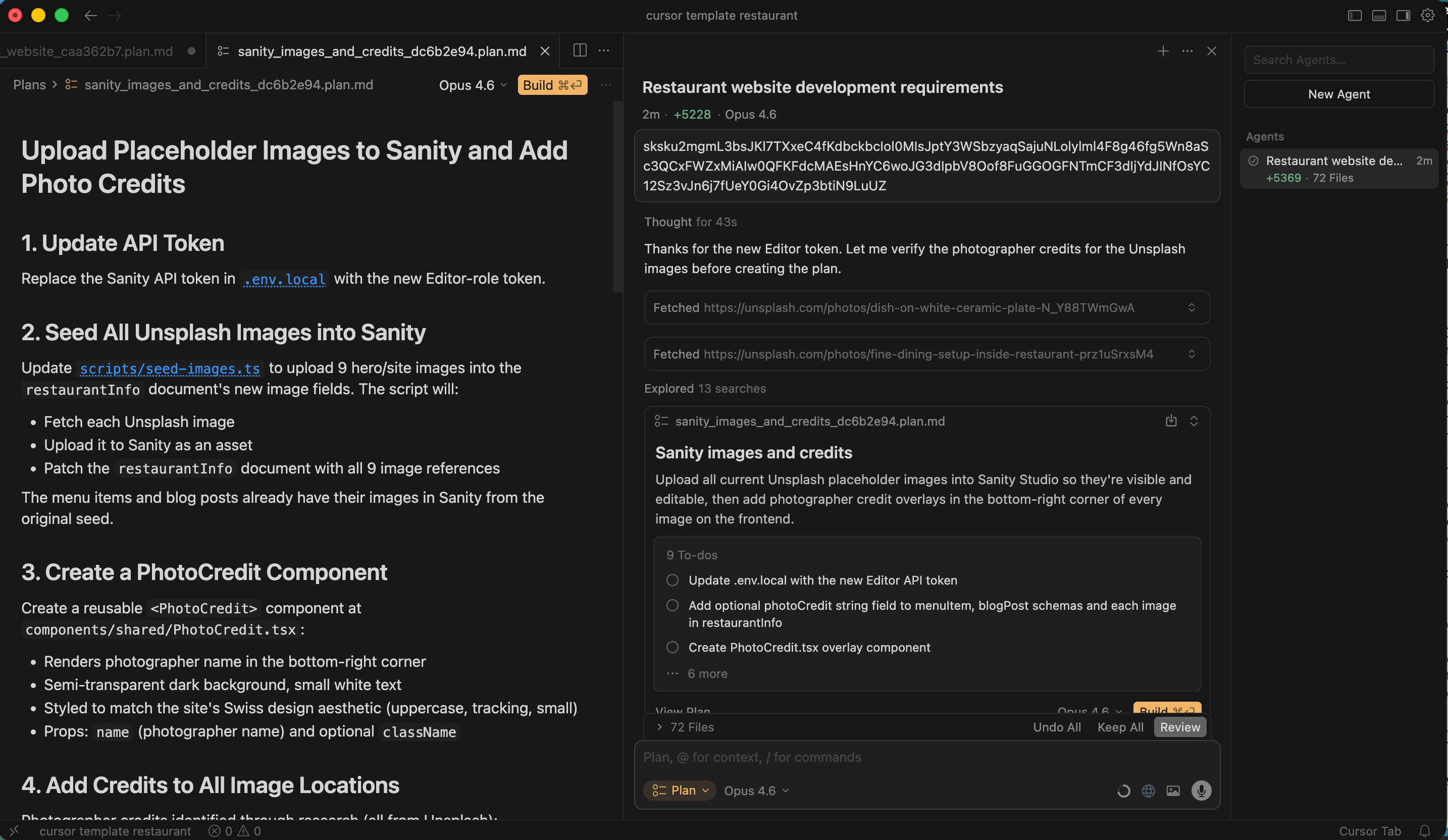 Prompt: “Make sure all images (Hero images, menu photos) are editable in Sanity too. And please add a field for ‘Photographer Credit’ so we don’t get sued.”