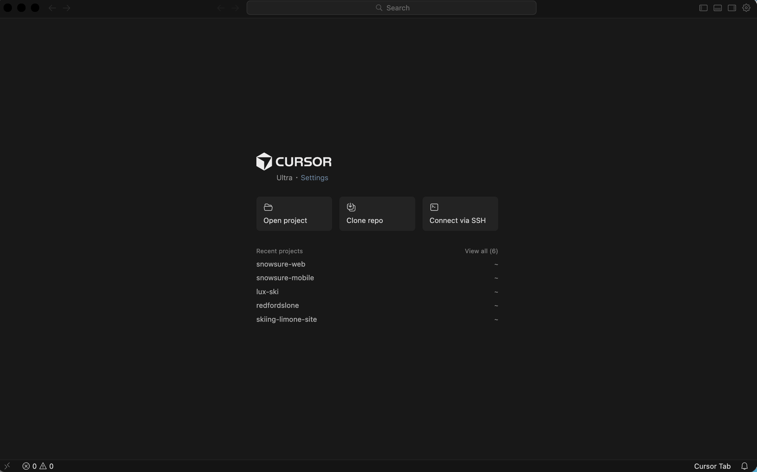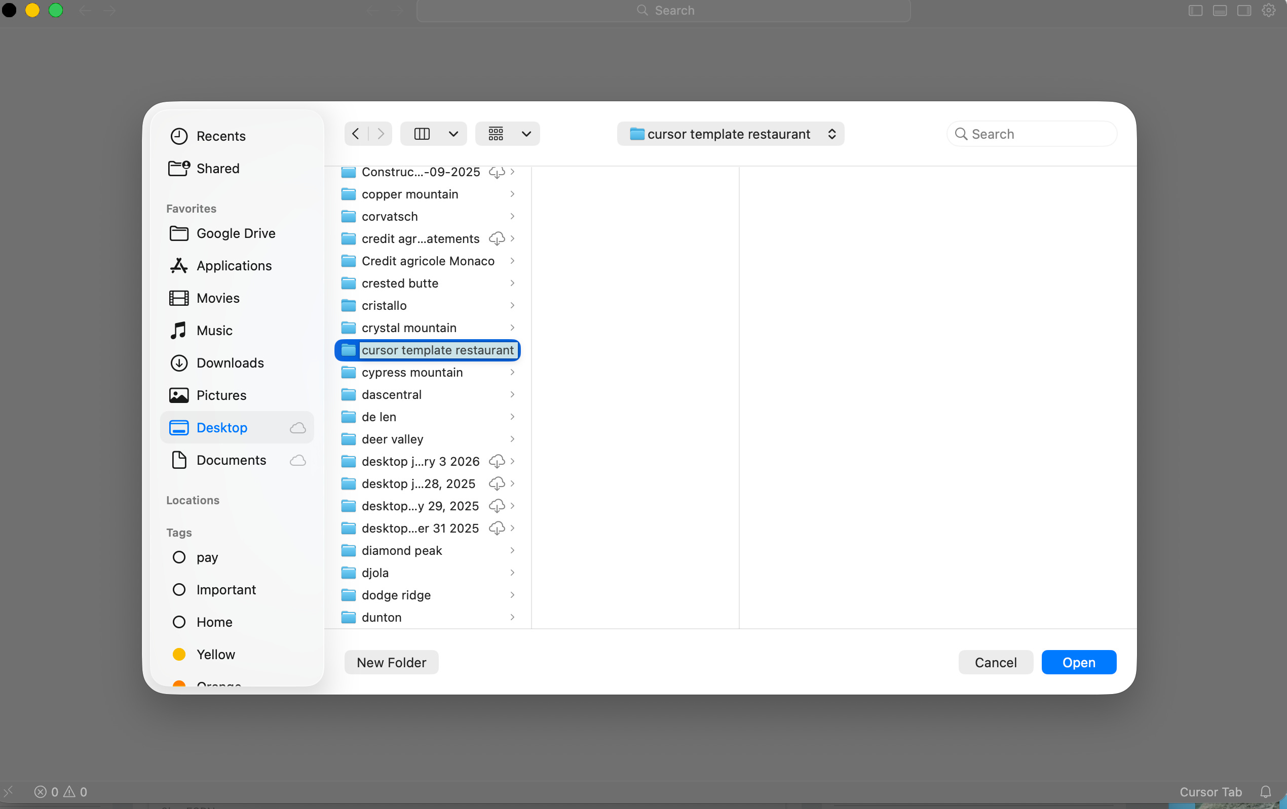 Open Cursor. Go to File > Open Folder and select your new empty cursor-cuisine folder.