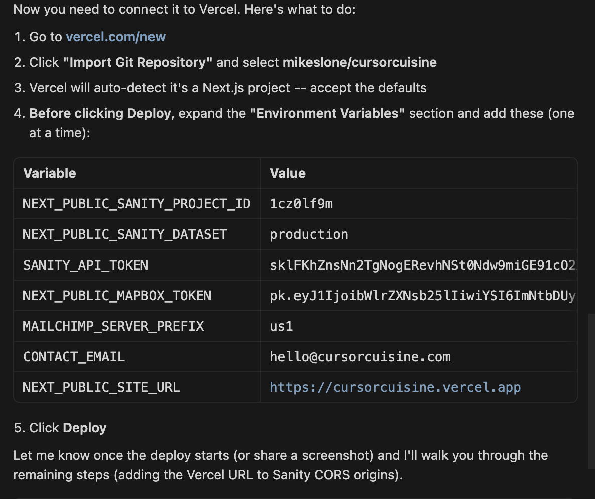 Cursor will tell you to add a line like:NEXT_PUBLIC_SANITY_PROJECT_ID=your_id_here