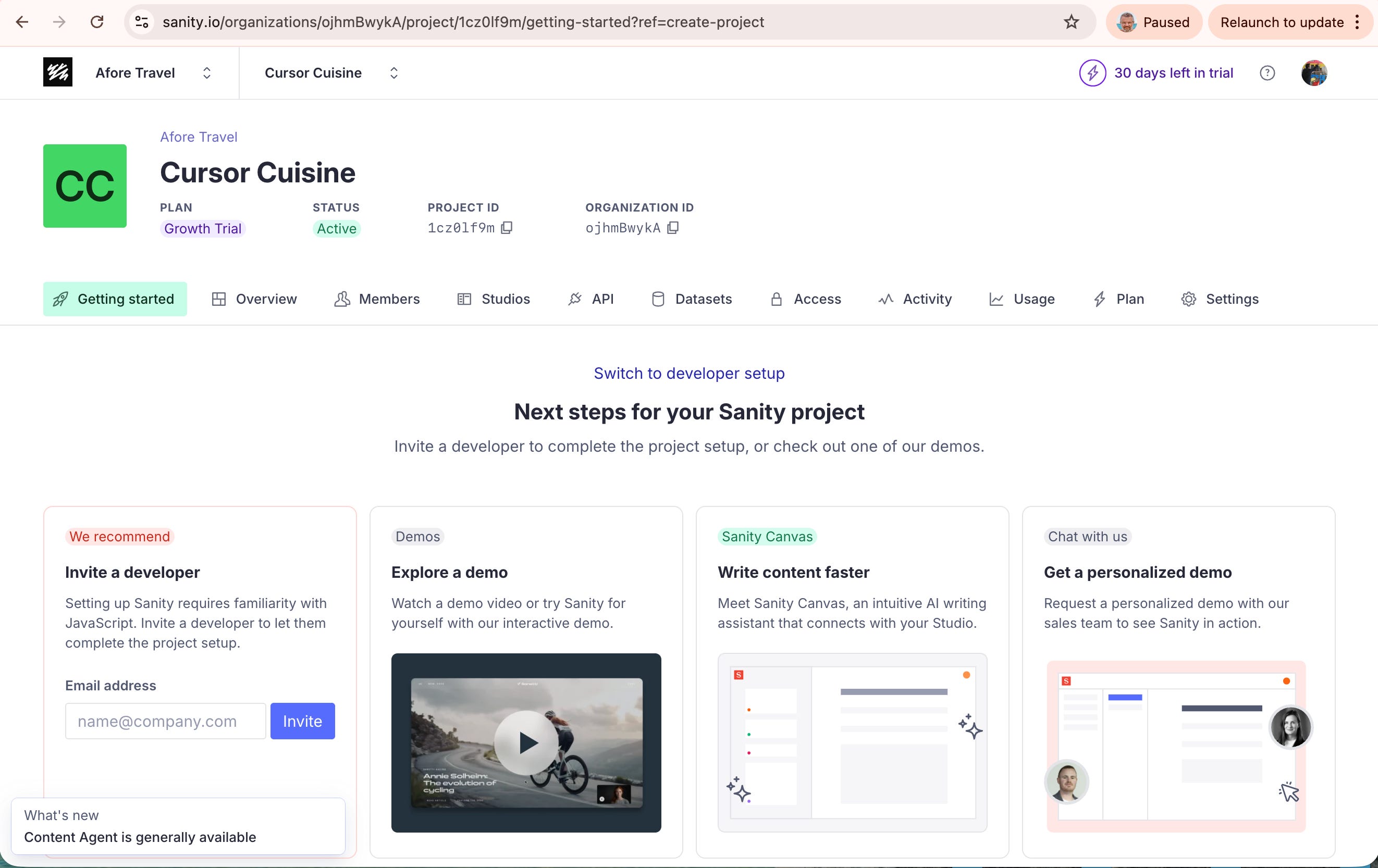 Go to your Sanity Dashboard in your browser (manage.sanity.io).