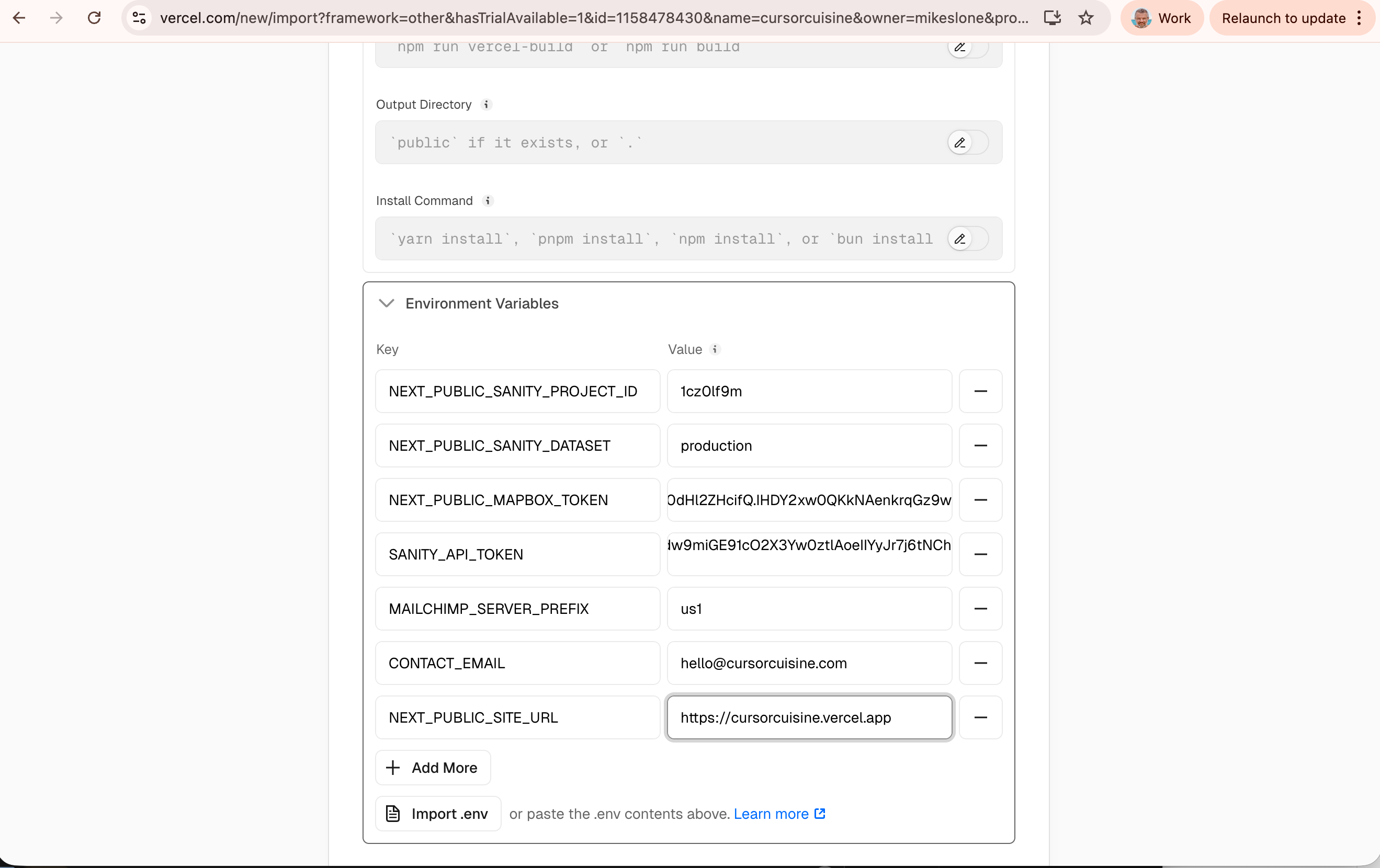 NEXT_PUBLIC_SANITY_PROJECT_IDNEXT_PUBLIC_MAPBOX_TOKENAny other keys Cursor told you to create.