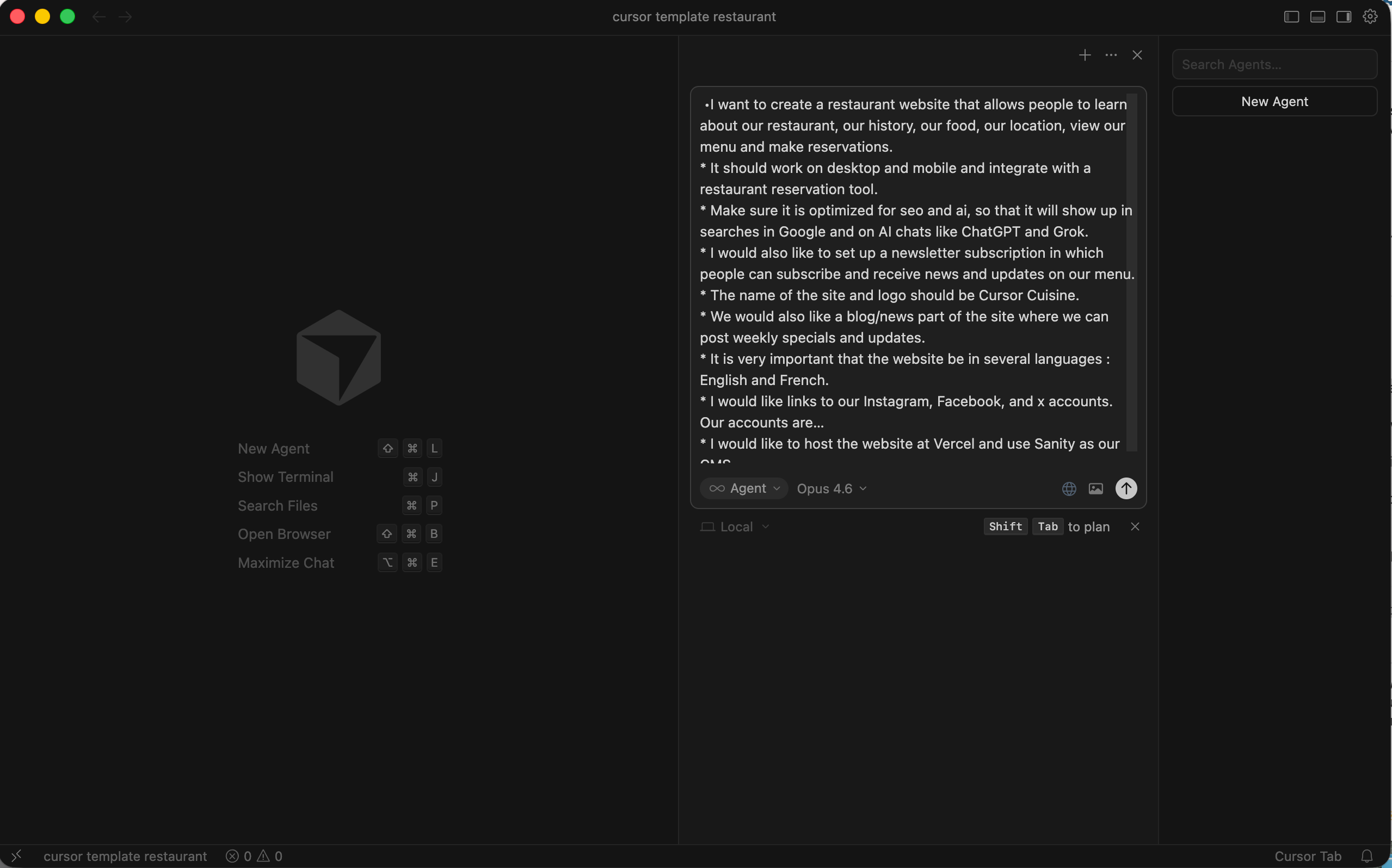 We are going to start by telling Cursor exactly what we want. The more specific you are, the better the result.