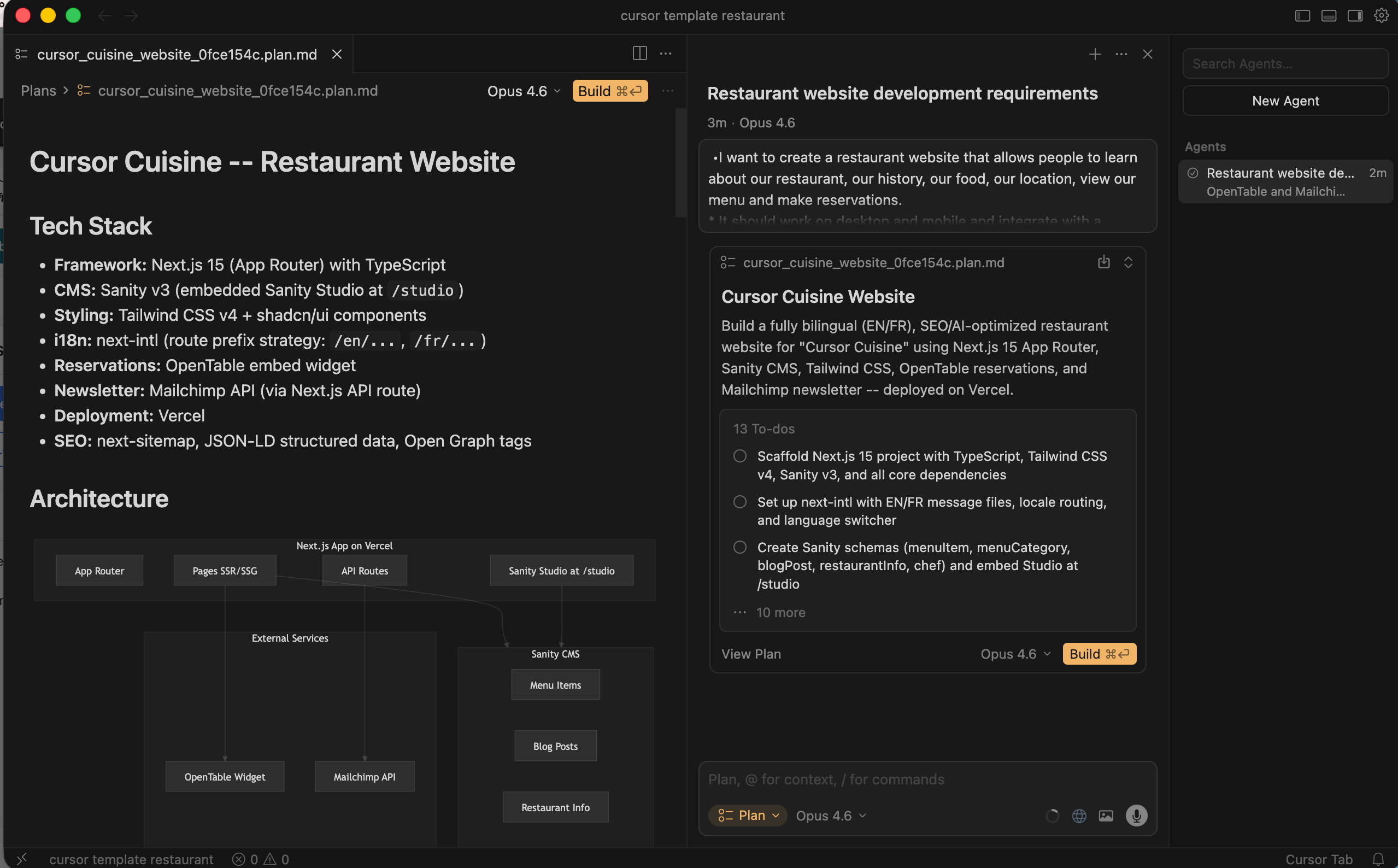Once the plan is generated, hit “Run” or “Composer” (Command+I) to let it start generating the file structure.