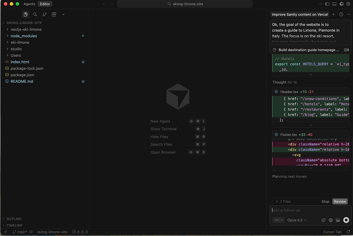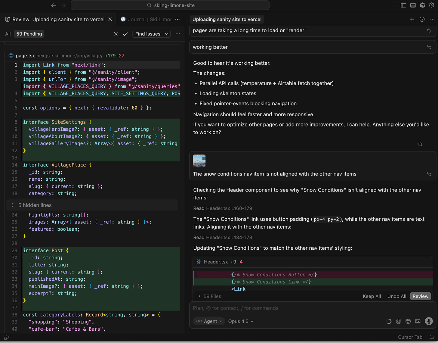 I opened Cursor on Friday morning and typed a simple request: “Help make my Sanity website look good.” I watched in amazement as it began working. In about 10 minutes, Cursor had generated a basic website with a winter theme, pulling in content I didn’t even realize I had added. It wasn’t perfect, but it was a functional site built by AI in minutes.