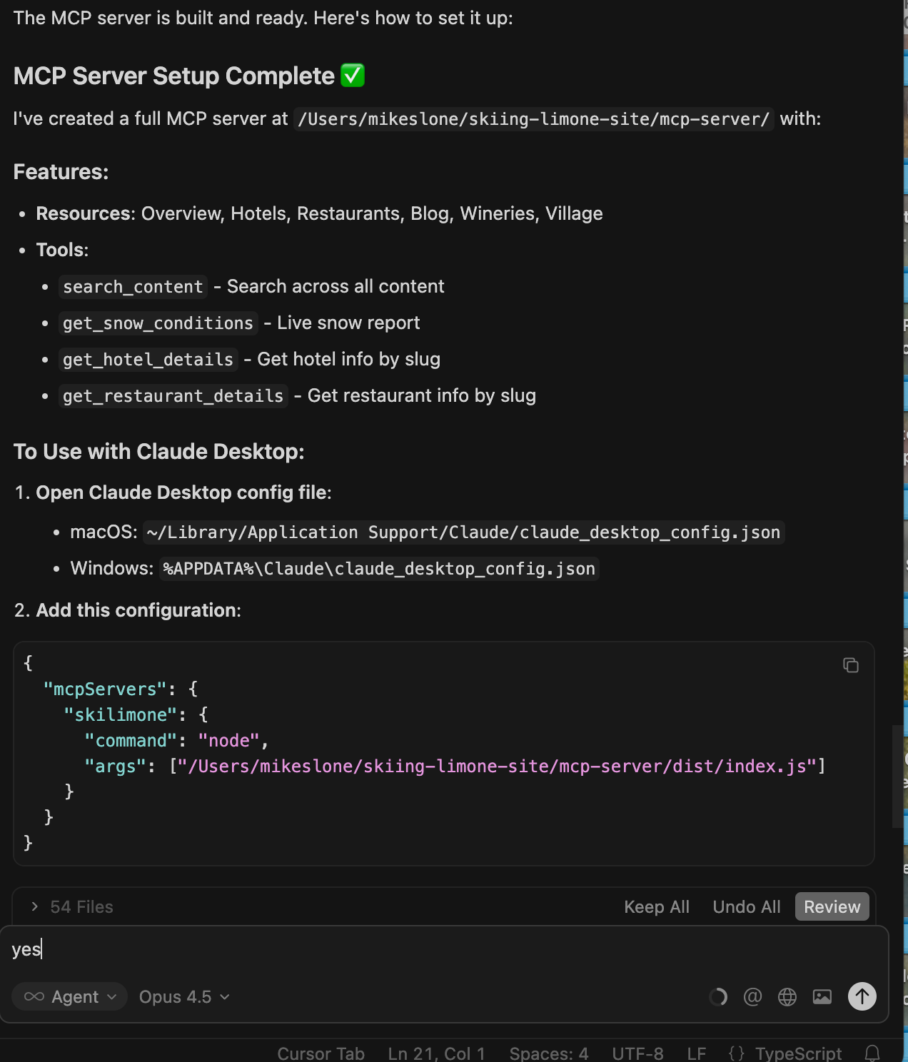 Cursor also set up a Model Context Protocol (MCP) server, which allows AI assistants like Claude to query my site’s content directly. While not all AI models support MCP yet, this puts the site on the cutting edge of AI discoverability. I also submitted the sitemap to Google Search Console and Bing Webmaster Tools to ensure search engines could find my content.