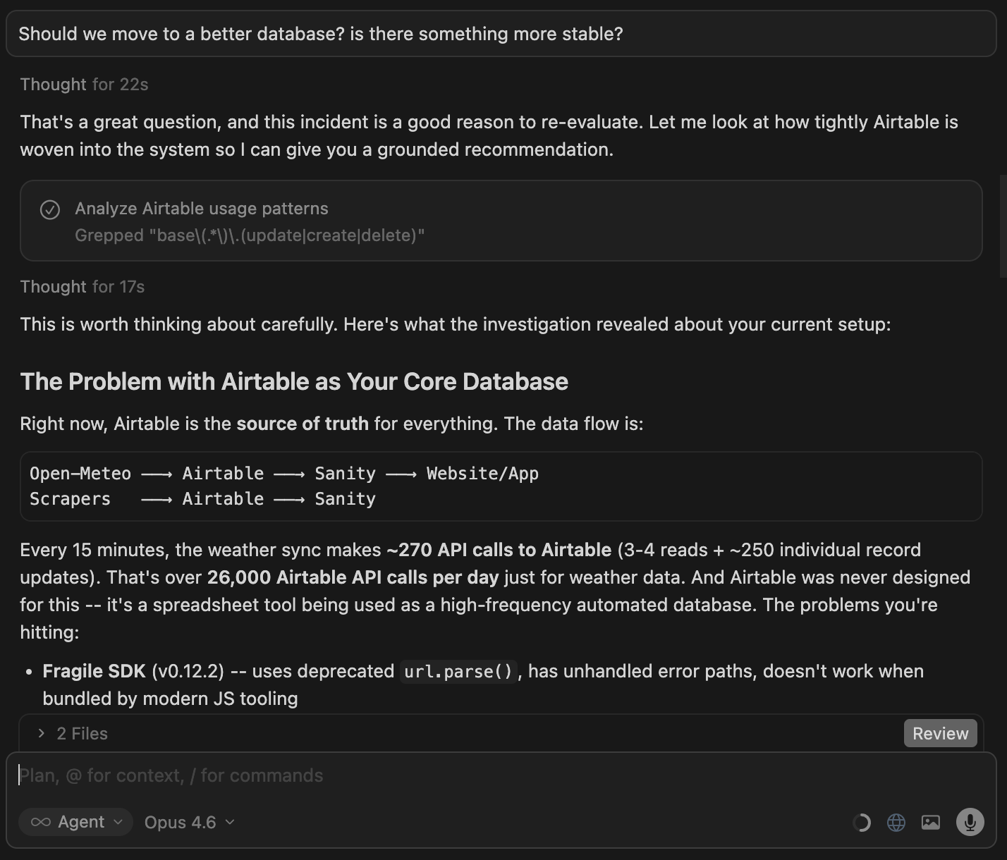 This moment was a wake-up call. I don’t want to stand in the way of progress, but I’ve learned that a little organization from the beginning makes life significantly easier down the road. This led me to a major decision: it was time for a foundational shift. I’m now working with Cursor on a massive rearchitecture, which includes moving critical data off Airtable and onto a more robust platform, Supabase.
