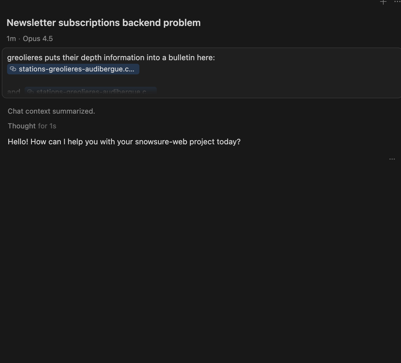 The new agent greeted me with, “Hello! How can I help you with your snowsure-web project today?” All the context, all the momentum—gone. It’s like firing your lead developer and hiring a new one every single day.
